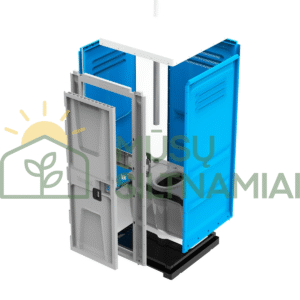 Komplektacija: talpa 250 ltr, ventiliavimo sistema, tualetino popieriaus laikiklis, sėdėjimo mechanizmas su dangčiu, kabliukas daiktams.